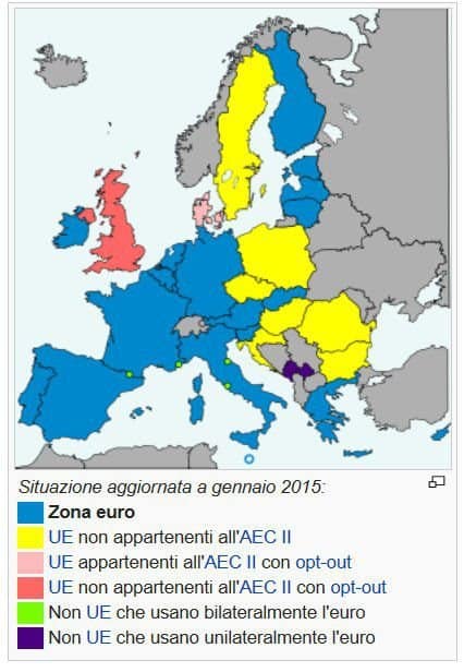 Una cosa poco chiara รจ questa, e riguarda la moneta, l'utilizzo dell'Euro e l'abbandono delle monete nazionali; infatti, i trattati europei stabiliscono posizioni di privilegio per alcune nazioni, non tutte le nazioni hanno avuto medesimi obblighi – cito da wikipedia, con riserva di recuperare il testo originale del Trattato di Maastricht: